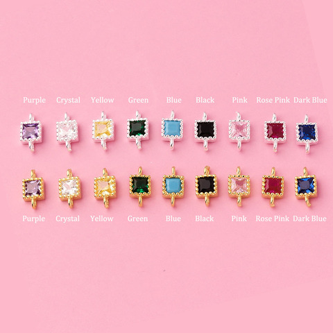 ใหม่เครื่องประดับ925เงินสเตอร์ลิงชุบทองที่มีสีสัน zircon สแควร์เชื่อมต่อเสน่ห์สำหรับสร้อยข้อมือเครื่องประดับทำ