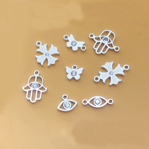 ยอดนิยม 925 เงินสเตอร์ลิงเพทายคริสตัลผีเสื้อมือข้ามตา Connector เสน่ห์จํานวนมากสําหรับเครื่องประดับทํา